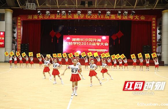 6月6日上午,湖南长沙同升湖实验学校举行2018届高三毕业送考大会。图为小学部的同学们表演为高考学子送行。