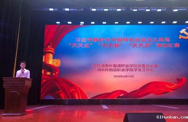本网讯(通讯员 丁蕾)为进一步推动全院师生深入学习贯彻习近平新时代中国特色社会主义思想,落实好“学懂、弄通、做实”的要求,将习近平新时代中国特色社会主义思想“天天见”“天天新”“天天深”系列活动不断推向深入,继5月份成功举办微宣讲比赛之后,6月19日下午,湖南外国语职业学院在弘学楼报告厅拉开演讲比赛的帷幕。